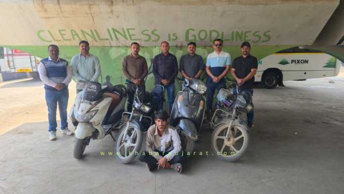 આ અંગેની વિગત મુજબ જામનગર શહેરમાં ખોડિયાર કોલોની અંધાશ્રમ આવાસ પાસેના બ્રિજ પાસે, ચોરાઉ મોટરસાઇકલ સાથે શખ્સ હોવાની એલસીબીના દિલીપભાઇ તલાવડીયા, કાસમભાઇ બ્લોચ, હિતેન્દ્રસિંહ જાડેજા તથા રૂષીરાજસિંહ વાળાને મળેલ બાતમીના આધારે જિલ્લા પોલીસ વડા ડો. રવિમોહન સૈનીની સુચના અને એલસીબીના પીઆઈ વી.એમ. લગારીયા, પીએસઆઇ સી. એમ. કાંટેલિયા, પી.એન. મોરી તથા સ્ટાફના હરપાલસિંહ સોઢા, ભરતભાઈ પટેલ, નાનજીભાઈ પટેલ, શરદભાઈ પરમાર, દિલીપભાઈ તલાવાડિયા, હિતેન્દ્રસિંહ જાડેજા, અરજણભાઈ કોડીયાતર, મયુદીનભાઈ સૈયદ, ક્રિપાલસિંહ જાડેજા, કાસમ બ્લોચ, નિર્મળસિંહ જાડેજા, કિશોરભાઈ પરમાર, ઋષિરાજસિંહ વાળા, મયુરસિંહ પરમાર, ભરતભાઇ ડાંગર, ઘનશ્યામભાઇ ડેરવાડિયા, સુમિતભાઇ શિયાર, સુરેશભાઇ માલકિયા, ધર્મેન્દ્રસિંહ જાડેજા, દયારામ ત્રિવેદી, બિજલભાઈ બારાસરા, ધર્મેન્દ્રસિંહ જાડેજા, ભારતીબેન ડાંગર સહિતના સ્ટાફે રેઇડ દરમિયાન અલબાઝ ઉર્ફે અરબાઝ ફારૂક કટારીયા તથા અનવર ઉર્ફે અનુ ઉર્ફે ચકેડી ઇસ્માઇલ સીપાઇ નામના બે શખ્સોને રૂા.1,40,000/-ની કિંમતના ચાર વાહનો સાથે ઝડપી લીધા હતાં. બન્ને શખ્સો વિરૂઘ્ધ પોલીસ સ્ટેશનમાં ચાર-ચાર ગુન્હાઓ નોંધાયેલા છે.