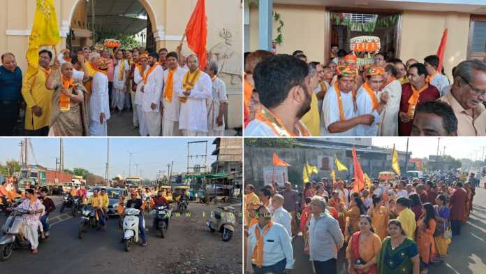 મોટી હવેલી જામનગરના ગાદી પતિ પૂ.પા.ગો.108 હરીરાયજી મહારાજની આજ્ઞા અને પૂ.પા.ગો. શ્રી વલ્લભરાયજી મહોદયની અઘ્યક્ષામાં પૂ.ગો.શ્રી રસાર્દ્રરાયજી અને પૂ.ગો.શ્રી પ્રેમાર્દ્રરાયજીના સાનિઘ્યમાં જામનગર વૈષ્ણવ સમાજ વૈશ્વાનર યુવા સંગઠન શ્રીમદ અનિરૂઘ્ધ પુષ્ટીમાર્ગીય મહાવિદ્યાલય, શ્રીમદ અનિરૂઘ્ધ પુષ્ટીમાર્ગીય મહિલા પાઠશાળા આંતરરાષ્ટ્રીય પુષ્ટીમાર્ગીય વૈષ્ણવ પરીષદ જામનગર શાખા વ્રજવલ્લભ સોશ્યલ ગૃપ તથા જામનગર વૈષ્ણવ મંડાણના સંયુકત ઉપક્રમે આજથી બે દિવસ શ્રી વલ્લભાચાર્યજીનો 549 મો પ્રાકટયોત્સવની ઉજવણી અંતર્ગત વિવિધ ધાર્મિક કાર્યક્રમોનું આયોજન કરાયું છે. જે અંતર્ગત આજે સવારે મંગળા આરતી યોજાઇ હતી. ત્યારબાદ પ્રભાત ફેરી યોજાઇ હતી. આ પ્રભાત ફેરી મોટી હવેલીથી પ્રસ્થાન કરી સેતાવાડ, ખંભાળિયા ગેઇટ, સુમેર કલબ રોડ, સાત રસ્તા સર્કલ, જિલ્લા પંચાયત ભવન, ટાઉન હોલ, તીનબતી, બેડી ગેઇટ, નાગનાથ ગેઇટ, હવેલીની ગૌશાળા થઇને મહાપ્રભુજી બેઠકે વિરામ લીધો હતો. જેમાં વૈષ્ણવ સમાજના લોકો મોટી સંખ્યામાં વાહનો સાથે જોડાયા હતાં.