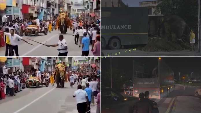 અમદાવાદમાં રથયાત્રા દરમિયાન આ ઘટના ત્યારે બની હતી જ્યારે શોભાયાત્રા દરમિયાન મોટેથી વાગતા સંગીતના અને ભીડના અવાજથી ગભરાયેલો એક નર હાથી અચાનક હરોળ તોડીને આગળ ધસી ગયો હતો. પાછળ પાછળ આવી રહેલા બે હાથીઓ પણ ગભરાઈ ગયા અને દોડી ગયા, જેના કારણે શોભાયાત્રામાં ખલેલ પહોંચી અને થોડા સમય માટે અંધાધૂંધી ફેલાઈ ગઈ હતી.