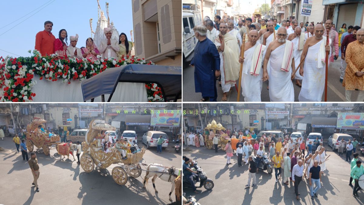 જામનગરના 46 દિગ્વીજય પ્લોટ વિસ્તારમાં વિમલનાથ એપાર્ટમેન્ટમાં રહેતા નંદીશભાઇ શાહ તથા તેમના પત્ની ધારીણીબેન શાહ અને તેમના પુત્ર તિર્થ શાહ આ ત્રણેય કુટુંબીજનો દિક્ષાગ્રહણ કરવા જઇ રહ્યા છે. રવિવારથી શરૂ થયેલ આ દિક્ષા સમારોહ અંતર્ગત વિવિધ ધાર્મિક કાર્યક્રમોમાં ગુરૂ ભગવંતનો પાવન પ્રવેશ, સામૈયુ તથા કુંભ સ્થાપના, જ્વારા રોપણ, 18 અભિષેક, દેશ વિરતી આરાધના સ્વરૂપ સામુહિક પૌષધવ્રત તથા પાટલા પૂજન, શાંતિ સ્નાત્ર પૂજન, જામનગરના રત્નકુક્ષી માતા-પિતા સન્માન સહિતના કાર્યક્રમો યોજાયા હતાં. ત્યારબાદ આજે સવારે વર્ષીદાનનો વરઘોડો યોજાયો હતો. જામનગરના ચાંદીબજારથી પ્રારંભ થઇ શહેરના વિવિધ રાજમાર્ગો પર ફરી શેઠ પોપટલાલ ધારશીભાઇ જૈન બોર્ડીગ સંકુલ ખાતે પુર્ણ થયો હતો. જેમાં જૈન સમાજના અગ્રણી ભરતભાઇ પટેલ, નવીનભાઇ ઝવેરી સહિતના અગ્રણીઓ તથા લોકો વિશાળ સંખ્યામાં જોડાયા હતાં.