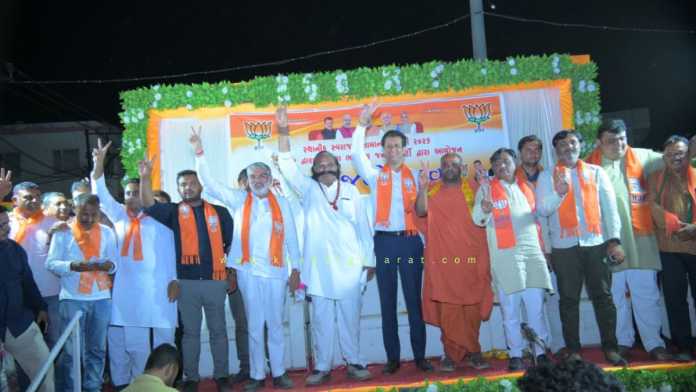સમગ્ર રાજ્ય સાથે દેવભૂમિ દ્વારકા જિલ્લામાં તાજેતરમાં યોજાઈ ગયેલી સામાન્ય ચૂંટણી બાદ ગઈકાલે મંગળવારે આ ચૂંટણીઓના મતદાનના અંતે ભારતીય જનતા પાર્ટીએ આ સંસ્થાઓમાં નોંધપાત્ર બેઠકો સાથે નવો કીર્તિમાન સ્થાપ્યો છે. ભાજપના આ ભવ્ય વિજયને આવકારવા માટે ગઈકાલે મંગળવારે સાંજે ખંભાળિયામાં ભવ્ય વિજય સભાનું આયોજન કરવામાં આવ્યું હતું. જેમાં મોટી સંખ્યામાં નગરજનો, મતદારો સાથે ભાજપના ધારાસભ્યો, આગેવાનો વિગેરે હોંશભેર જોડાયા હતા.