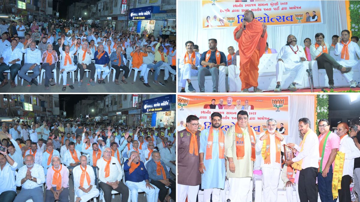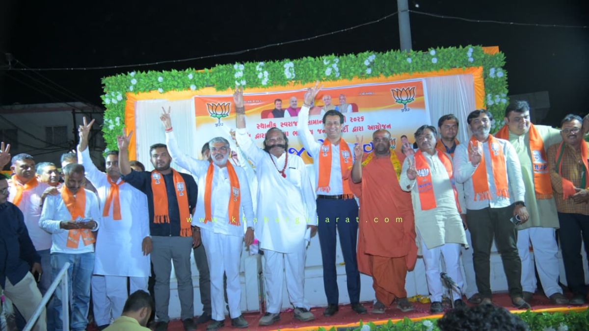 દેવભૂમિ દ્વારકા જિલ્લાની સામાન્ય ચૂંટણીઓમાં કુલ 162 પૈકી 112 બેઠક ભાજપને સાંપડી છે. ત્યારે અમુક સંસ્થાને બાદ કરતા કોંગ્રેસનો કરુણ રકાશ થયો છે. આ ઉપરાંત આમ આદમી પાર્ટીને પણ આંગળીના વેઢે ગણાય એટલી બેઠક મળી છે. ભાજપને મળેલી આ અનોખી સિદ્ધિની ખુશાલીમાં તેમજ મતદારોનો આભાર વ્યક્ત કરવા માટે ગઈકાલે મંગળવારે સાંજે ખંભાળિયાના જોધપુર ગેઈટ પાસે ગાંધીજીની પ્રતિમા નજીક વિજય સભાનું ભવ્ય આયોજન કરવામાં આવ્યું હતું. જેમાં જિલ્લા પંચાયત, તાલુકા પંચાયત અને નગરપાલિકામાં વિજેતા બનેલા ઉમેદવારોને શુભેચ્છા આપવા તેમજ મતદારો અને કાર્યકરોનો આભાર વ્યક્ત કરવા માટે દેવભૂમિ દ્વારકા જિલ્લા ભાજપ પ્રમુખ મયુરભાઈ ગઢવી સાથે જિલ્લા પ્રભારી પુનિતભાઈ શર્મા ખંભાળિયાના ધારાસભ્ય મુળુભાઈ બેરા, દ્વારકાના ધારાસભ્ય પબુભા માણેકની ખાસ આગેવાનીમાં આ આયોજન કરવામાં આવ્યું હતું.