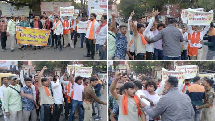 બાંગ્લાદેશમાં સત્તા પરિવર્તન બાદ ઈસ્લામી જેહાદી ગતિવિધિ નિરંતર વધી રહી છે જેના વિરોધમાં હિન્દુ પરિષદ જામનગર બજરંગ દળ દુર્ગાવાહિની અને માતૃશક્તિ દ્વારા શહેરના લાલ બંગલા સર્કલ ખાતે વિરોધ પ્રદર્શન કરવામાં આવ્યું હતું.