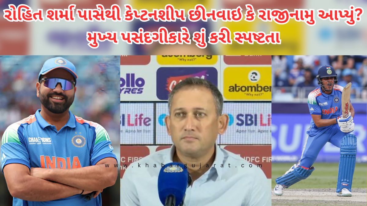 ઉલ્લેખનીય છે કે, ટી-20 વર્લ્ડ કપ જીત્યા બાદ રોહિત શર્માએ નિવૃતી જાહેર કરતા સુર્યકુમાર યાદવને ટી-20 ટીમનો કેપ્ટન બનાવાયો હતો. ત્યારબાદ રોહિત શર્માએ ટેસ્ટ ક્રિકેટમાંથી નિવૃતી જાહેર કરતા શુભમન ગીલને ટેસ્ટ કેપ્ટન બનાવવામાં આવ્યો હતો ત્યારે હવે મુખ્ય પસંદગીકાર અજીત અગરકર દ્વારા એવું નિવેદન કરાયું છે કે ત્રણેય ફોર્મેટમાં અલગ અલગ કેપ્ટનના પક્ષમાં નથી આથી એવું લાગે છે કે રોહિત શર્માને કેપ્ટનશીપમાંથી હટાવવામાં આવ્યો હશે.