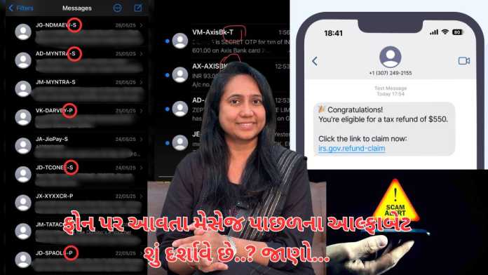 આ આલ્ફાબેટ TRAI ના કોડ છે જે તમને જણાવે છે કે આ મેસેજ કોના દ્વારા મોકલવામાં આવ્યો છે.