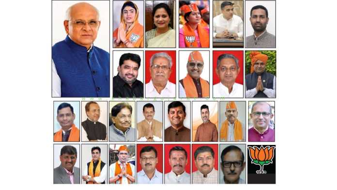ગુજરાત વિધાનસભામાં મુખ્યમંત્રી ભુપેન્દ્ર પટેલના નેતૃત્વ હેઠળના ભાજપ સરકારના મંત્રી મંડળનું વિસ્તરણ કરવામાં આવ્યું છે. કુલ 25 મંત્રીની યાદી જાહેર કરવામાં આવી હતી. આજે 17 ઓકટોબરના સવારે 11-30 વાગ્યે મહાત્મા મંદિર ખાતે શપથ વિધિનો કાર્યક્રમ યોજાયો હતો. જેમાં રાજ્યપાલ આચાર્ય દેવવ્રતએ તમામ મંત્રીઓને શપથ લેવડાવ્યા હતાં. જામનગર ઉત્તર વિધાનસભાના ધારાસભ્ય રીવાબા જાડેજા સહિત 25 ધારાસભ્યોને મંત્રી બનાવવામાં આવ્યા હતાં. આ મંત્રીઓને કયુ ખાતુ ફાળવવામાં આવ્યું તેની યાદી નીચે મુજબ છે.