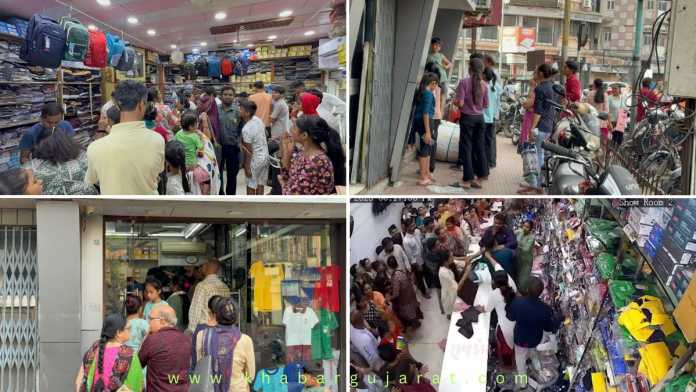 જામનગરમાં યુનિફોર્મની દુકાનોમાં ભારે ધસારો જોવા મળી રહ્યો છે. દુકાનોમાં ભારે ભીડ તથા મહિલાઓ પણ ખરીદીમાં જતી હોય મુશ્કેલીનો સામનો કરવો પડે છે. આ ધસારાને કારણે વાલીઓ અને વેપારીઓ વચ્ચે પણ નાની મોટી ચકમક અને ગજગ્રાહ સર્જાતા હોય છે. બીજીતરફ વેપારીઓ પણ પરેશાન થતાં હોય છે. સવારથી સાંજ સુધી ભારે ભીડ વચ્ચે કયારેક વેપારીઓ પણ આકરો મીજાજ અપનાવી લેતાં હોય છે. ત્યારે જો આ અંગે વેપારીઓ પણ સુઝબુઝ અપનાવી ટોકન સિસ્ટમ કે એવી કોઇ પદ્ધતિ અપનાવે તો વાલીઓને પણ મુશ્કેલી ન પડે અને વેપારીઓ પણ સરળતાથી વેપાર કરી શકે અને કોઇ ઘર્ષણ ન સર્જાય.