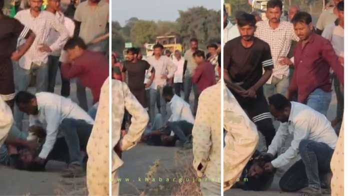 મળતી માહિતી મુજબ, ત્રણ શખ્સોએ એક યુવકને રોડ પર રોકી લાકડાના ધોકા વડે માર માર્યો હતો. ઘટનાસ્થળ પર મોટી સંખ્યામાં લોકો એકત્રિત થઈ ગયા હતા, છતાં યુવકને બચાવવા કોઈ આગળ આવ્યું હતું કે નહીં તે સ્પષ્ટ થયું નથી. સમગ્ર ઘટનાનો વીડિયો કોઈએ મોબાઇલમાં કેદ કરી સોશિયલ મીડિયામાં શેર કર્યો હતો, જેના કારણે મામલો ઝડપથી ચર્ચામાં આવ્યો છે. વિડીયોમાં સ્પષ્ટ દેખાય છે કે લાકડાના ધોકા વડે યુવાનને રસ્તા પર પછાડીને એક બાજુ એક ધોકા મારીને માર મારવામાં આવી રહ્યો છે.