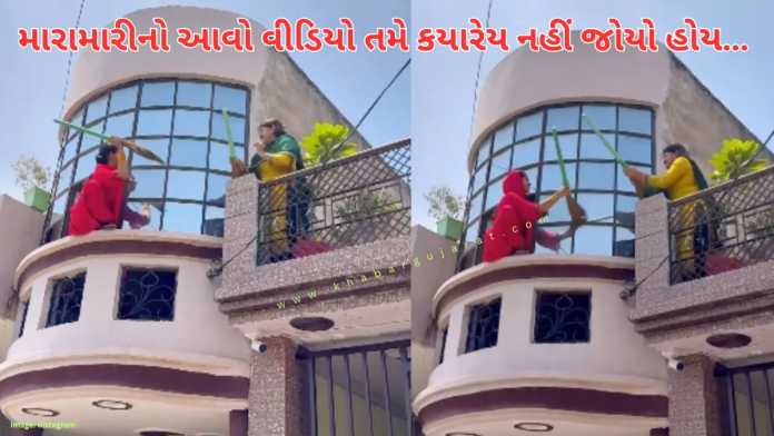 સોશિયલ મીડિયાના ઈન્સ્ટ્રાગ્રામ પ્લેટફોર્મ પર @anchal_gopal_dhiman_19 નામના એકાઉન્ટ પરથી શેર કરવામાં આવ્યો છે જેમાં જોઇ શકાય છે કે એક મહિલા બીજુ મહિલા સાથે લડી રહી છે. જ્યારે એક મહિલા પોતાના ઘરની છત પર ઉભી છે. ત્યારે બીજુ કાચની બારીમાંથી લડી રહી છે. કોઇ વાત વાતમાં તેઓ અચાનક જ આક્રમક થઈ ગયા અને હાજર પરિસ્થિતિમાં જ ત્યાં જ ઝગડી પડયા આ પરિસ્થિતિ જોતા ખ્યાલ આવે છે કે એક મહિલા કાચની બારીમાં લટકી રહી છે ત્યારે બન્ને ઝાડુનો ઉપયોગ કરીને લડી રહ્યા છે.